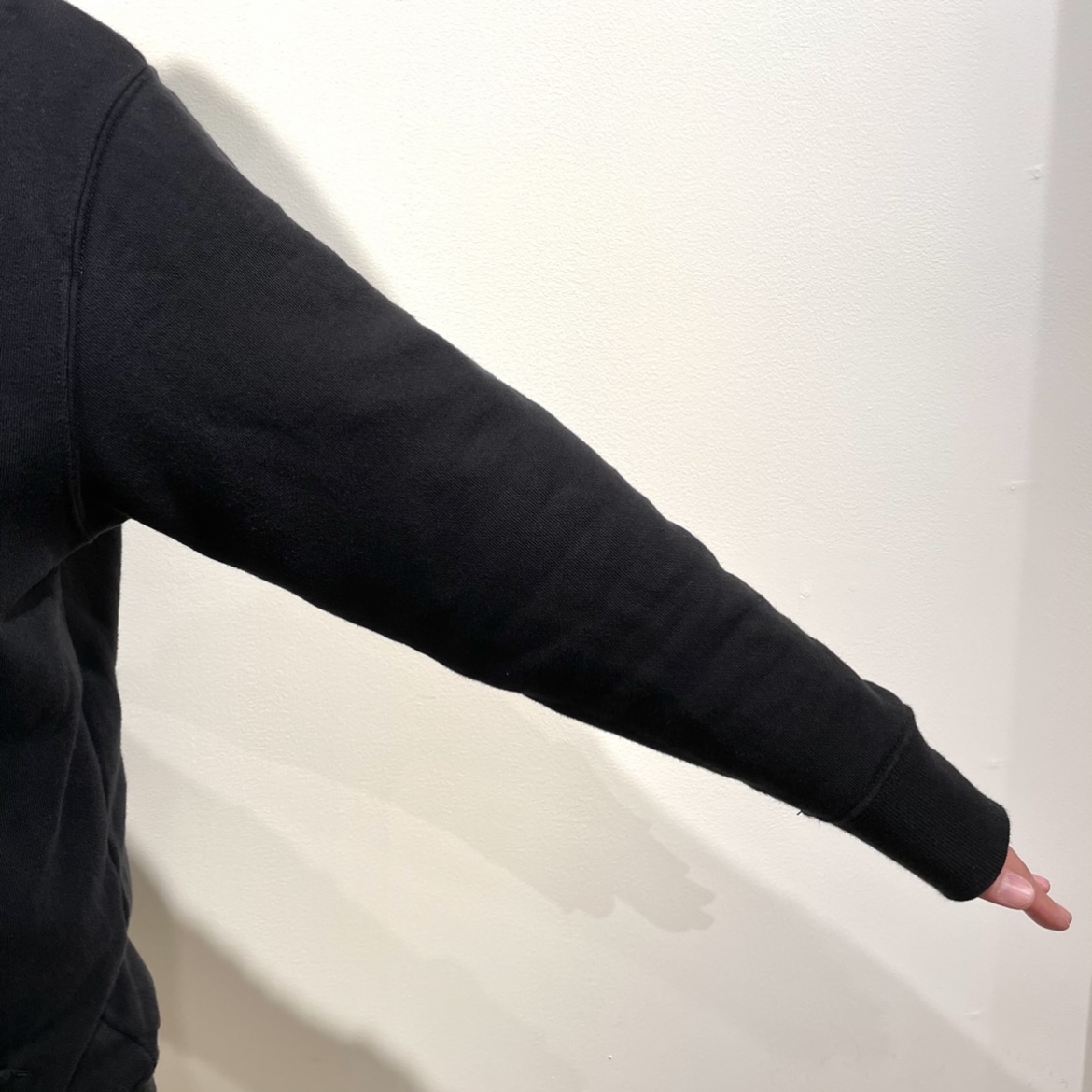 着ると少し長めで手の甲が、隠れる