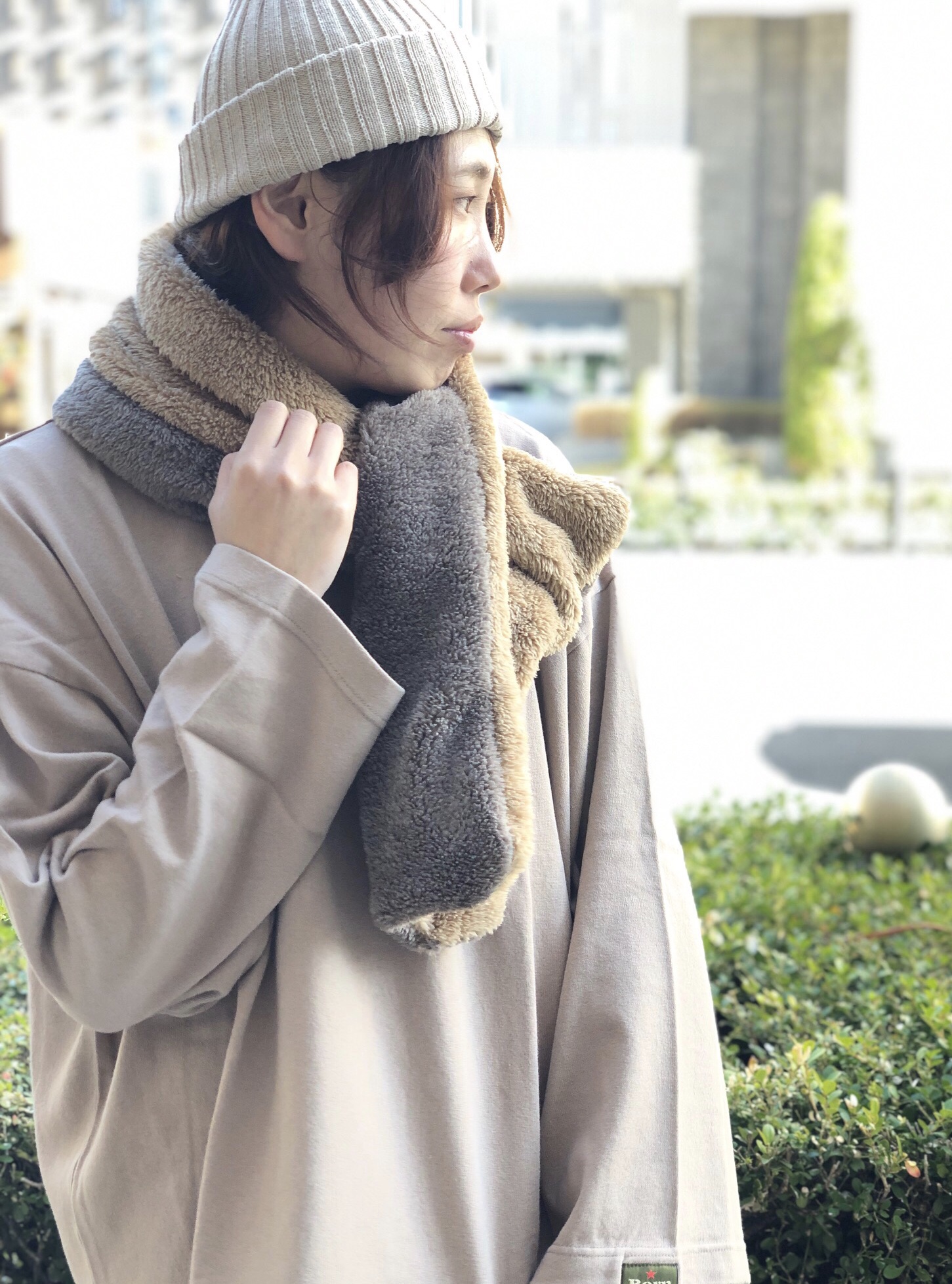 首元からあったかおしゃれに! GREEN BOWLから登場したボアマフラーがおすすめなんです☆★ 早速スタッフが着用してみました(*’.’*) 2色配色となっていて表に出てくる色味を気分で変えれちゃいます◎ 付け方も差し込むタイプなので付けやすさも抜群となっております!!! 是非今からおすすめなので要チェックお願いします(^_^)*