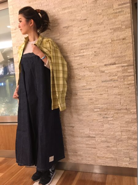 10oz Denim Skants All-in-One* 皆さんお待たせ致しました* 10oz Denim Skants All-in-Oneが入荷しました! 早速、武井さんが着用してくださりました☆ 最初はどんな感じになるだろ???と2人で 考えておりましたが来てみるとスカートにも 見えてくれ、こんな感じでサッパリ、シンプル に合わせてあげると子供っぽくなり過ぎずに 着ていただけます◎ この春も使えそうなアイテムなので要チェックです!!