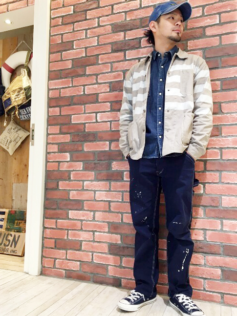 men’s style* men’s style* 先日大床さんが着ていた GREENBOWLのジャケット 男性が着ると こんな感じ!です☆ 渋くていいですよね* 女性がオーバーサイズで 着ても可愛いです!! カバーオールは 色々な季節で役立ち 一つあれば重宝するので おすすめです♪ Jacket:¥14,040 ご来店お待ちしております*