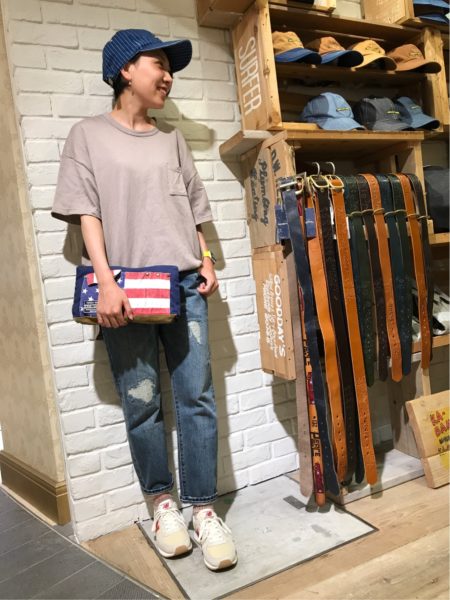 秋色 * この色可愛いです〜♡と中川さんは 秋色ベージュをチョイス * トップスは丈が長かったようで インして着てみました( ^ω^ )! デニムと無地のTシャツでシンプルなので 小物で差し色を** アメリカのツールバックも可愛く引き立ちます♡ 参考にしてみて下さいね(o^^o)