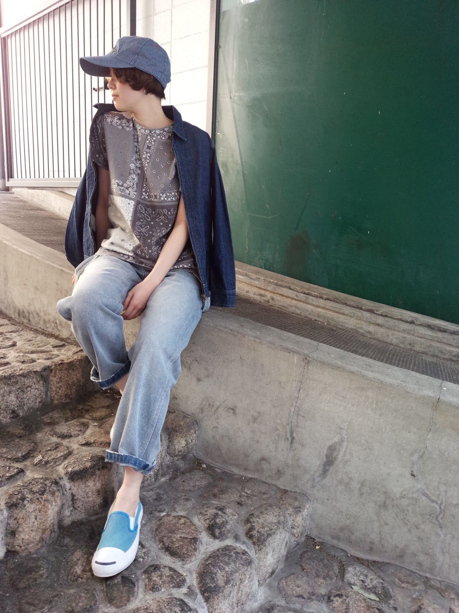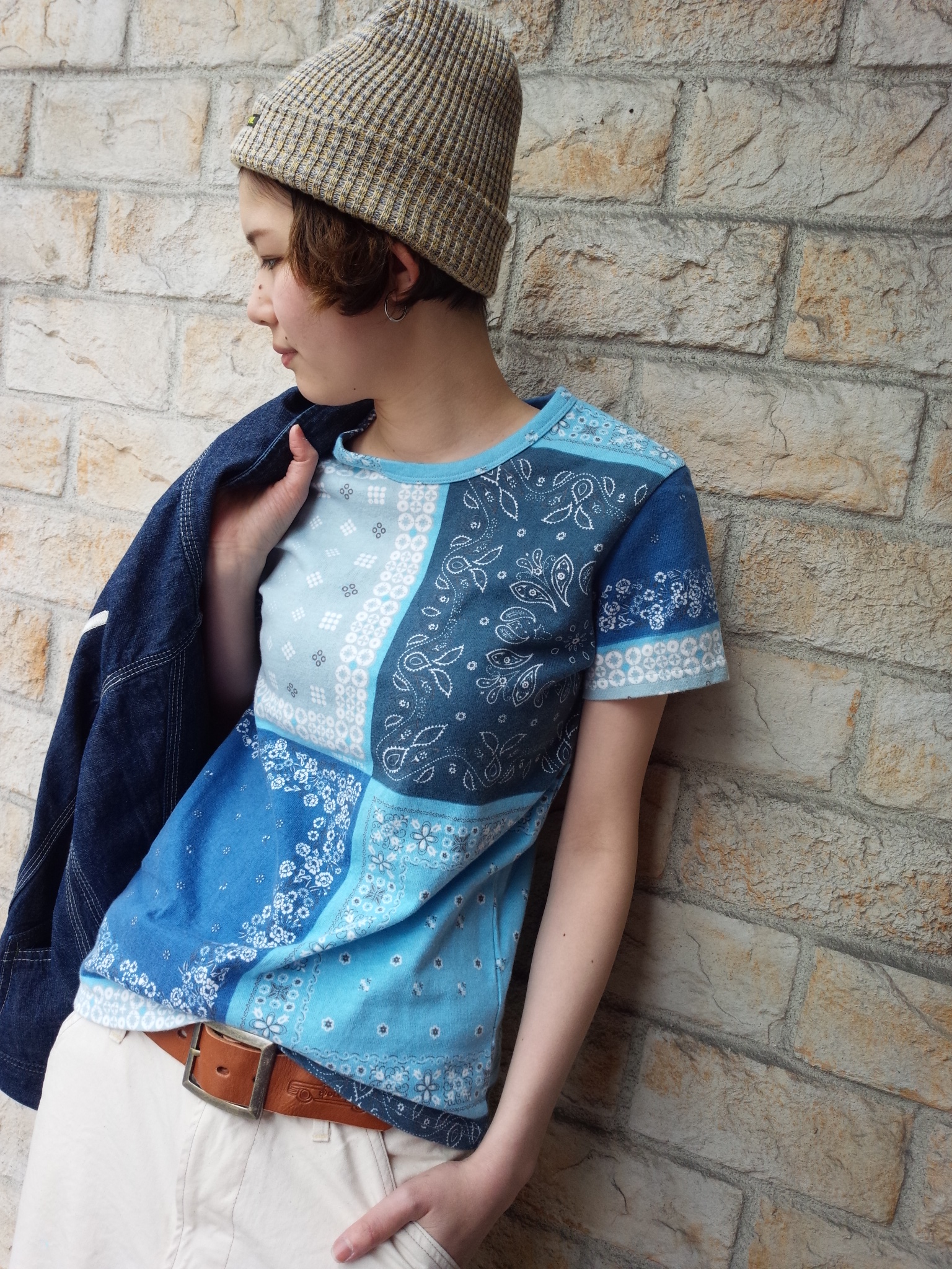 バンダナプリントTシャツ 今年もバンダナプリントTシャツ入荷致しました☆ 今年は鮮やかなブルーとシックなチャコールの2色展開となっております♪ サイズはS、Mとご用意しておりますので男性の方にも着て頂けます☆ 2色ともなんば店木村さんに着てもらいました~~(*^_^*) かっこよく着こなせてますね!(^^)!♪ 去年買いそびれたな~という方はもちろん!! 去年も買ったけどまた色違いで!!という方も是非☆ ゲットしちゃってくださいね(^O^)/ 新作続々入荷してきてますよ~~!!!またご紹介しますね♪*