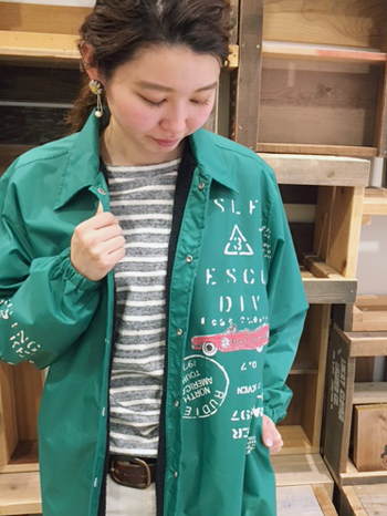 ベンチコート* ベンチコート* 着てみました(^^ ) 派手かな~と思っていましたが 着てみたら、 意外にもそうではない! という感想でした(笑) 内側もボアになってるので 温かく着ていただけます* 丈が長めなのが またいいですね(^^ )! coat:10,584円