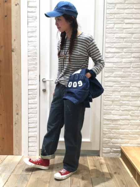 ダックワークパンツ入荷☆ 新作のパンツが入荷しております☆ 武井さんが着ているのが新作のダックワークパンツです* 生地は薄手で柔らかく履きやすくなっています♪ 写真では分かりにくいかもしれないんですが、 生地の色も今までにないような色具合でとっても可愛いです♡♡ 是非☆店頭で手に取ってもらえたら嬉しいです(*^_^*) ご来店お待ちしております~~(*^^)v