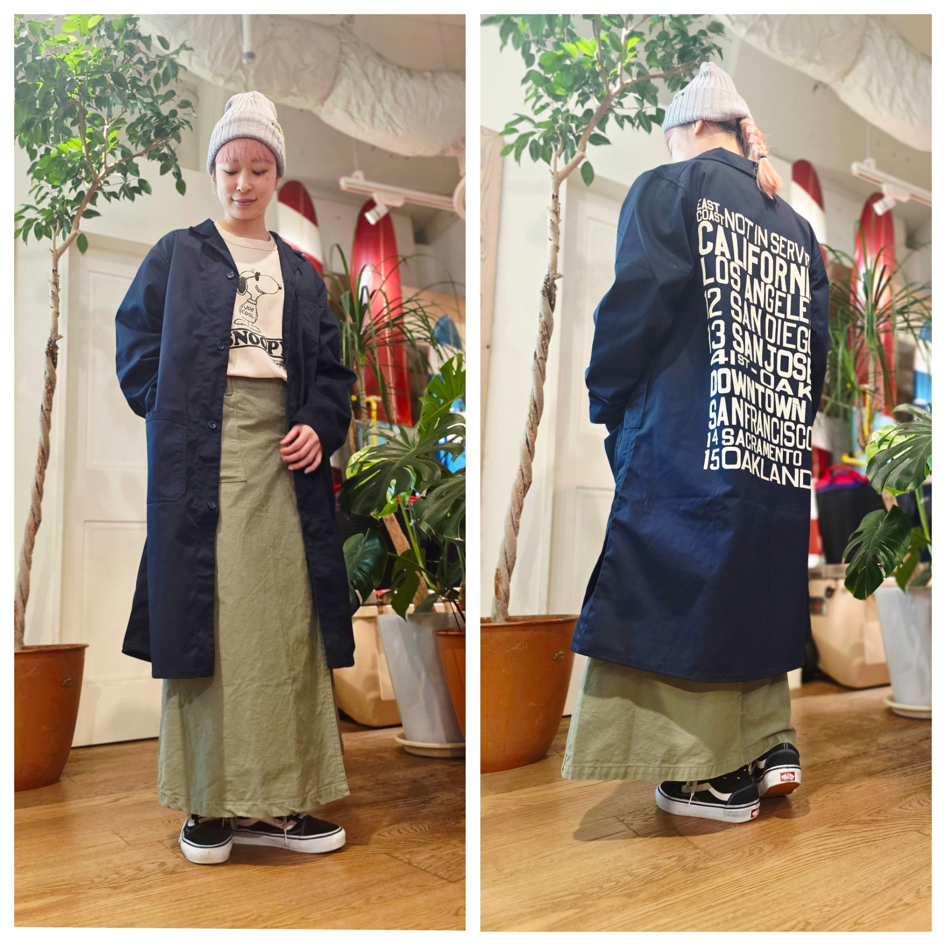ネイビーカラーに背中のプリントが特徴的なエンジニアコートを主役に