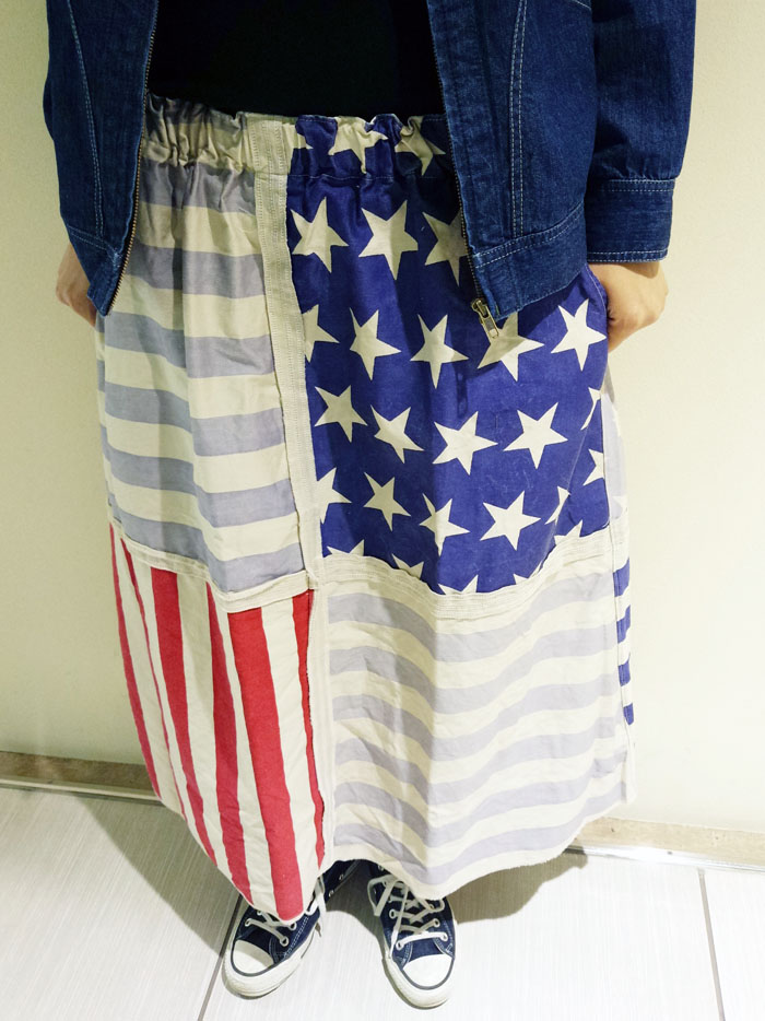 アメリカ柄の中心のつぎめ!!通常縫い代が表にでる事はないのですが!?これはでているのです!!