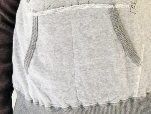 カンガルーポケット中心にステッチが‼ポケットの中で小物がぐちゃぐちゃにならないんですよね(笑)