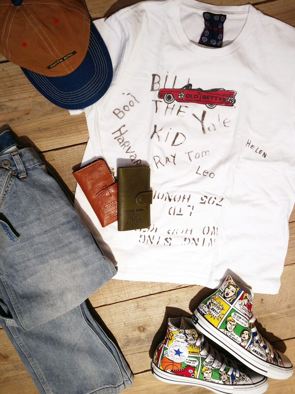 OLD BETTY’Sといえば… OLD BETTY’Sといえば… そう!☆ キャデラックですね(笑) 先日、ブログで紹介した ベンチコートに キャデラックのプリントが 施されていましたが 今回はおそろいの Tシャツも入荷しました* cap:5,292円 denim: 16,200円 T-shirts:3,996円 iPhone case:6,912円 shoes:8,100円 今期はキャデラックアイテム が多いかも!? これからが楽しみですね☆