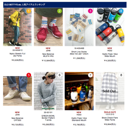それでは、今週のOLD BETTY’Sなどのブランド人気アイテムランキングからご紹介です!