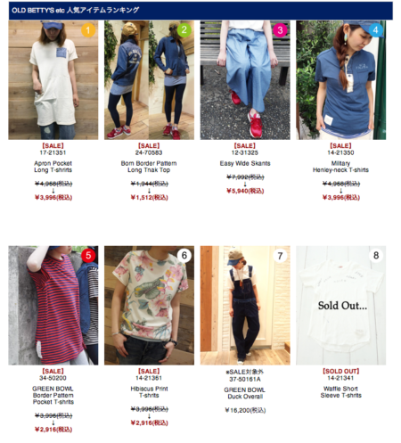 それでは、今週のOLD BETTY’Sなどのブランド人気アイテムランキングからご紹介です!