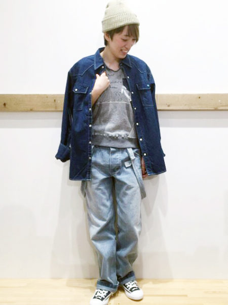 お久しぶりの比留間さんです* お久しぶりの比留間さんです* 先日金ちゃんブログでも 紹介されていた アフターフードパーカー 着心地がとっても良い♡ と大絶賛です♪♪ 確かに!とーっても 気持ちいいですもんね* 胸元ものイカリマークも お気に入りだそうです☆ インディゴシャツと 新作サスペンダーデニム さりげなくボーダーのコンバースを合わせて マリンスタイルの完成です♪ parka:5,940円 shirts:12,960円 pants:16.200円