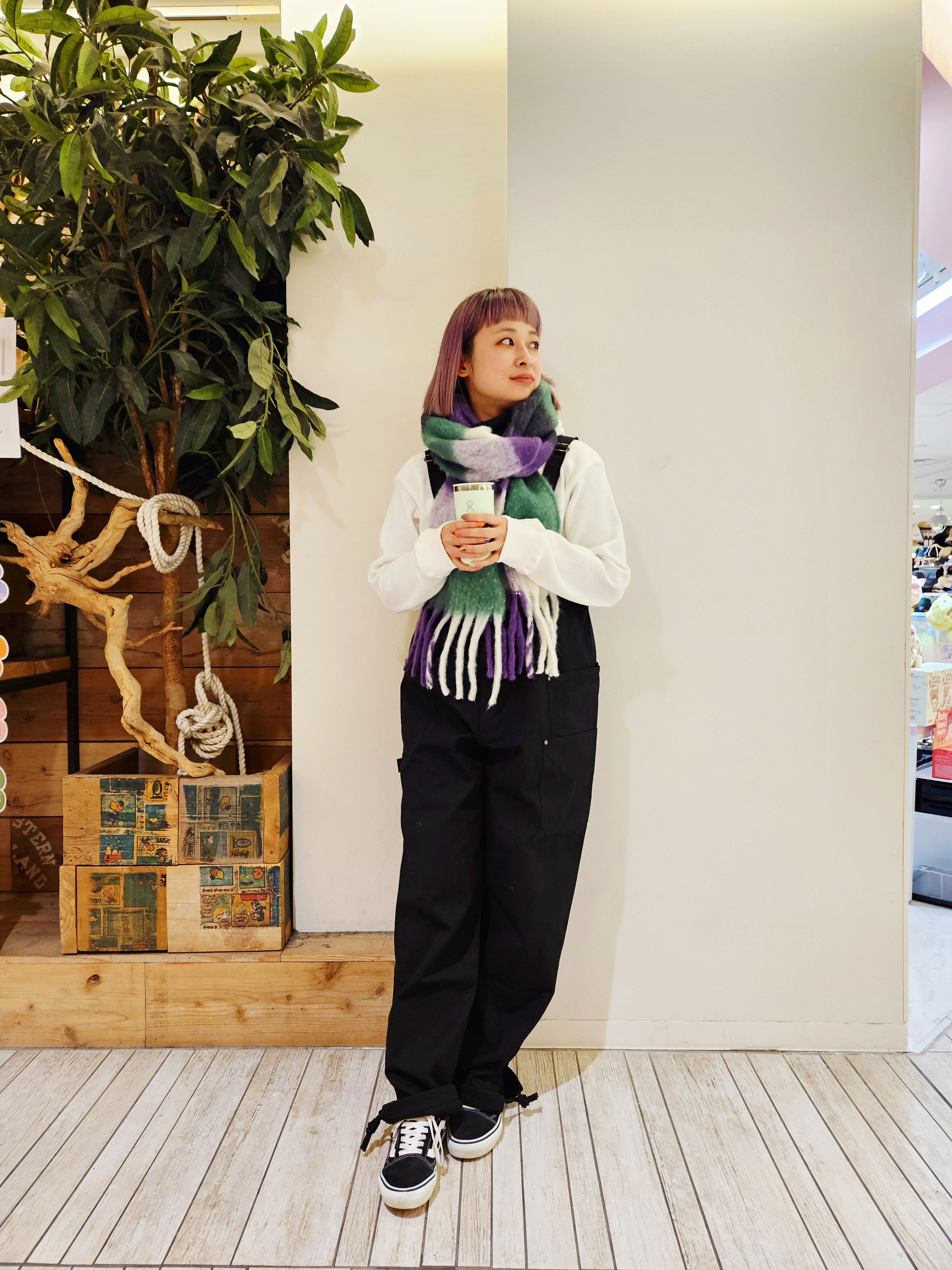 いっきに寒くなったので、暖かいストールを使って組み合わせました!!