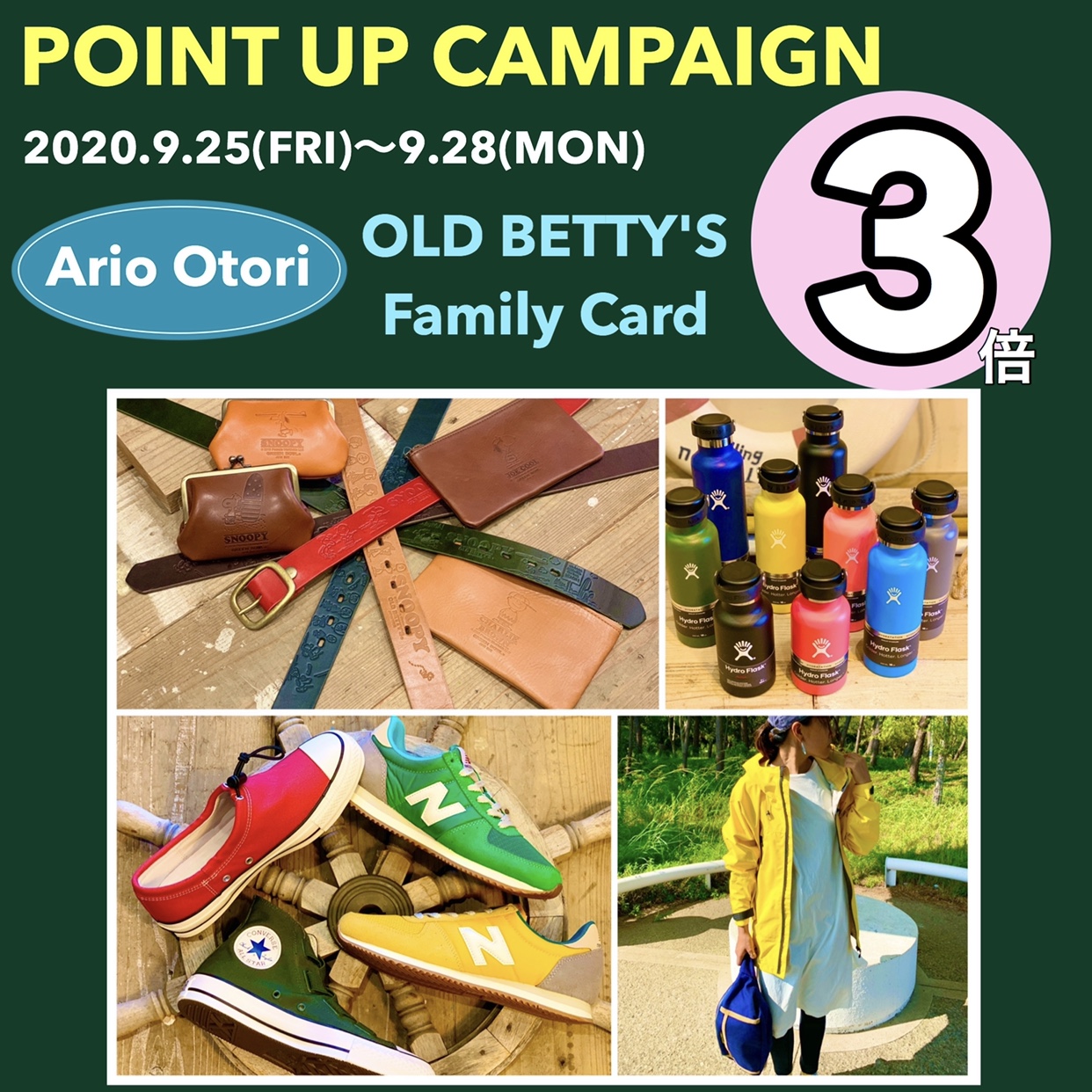 本日より、アリオ鳳店にてオールドベティーズファミリーカードポイントアップ3倍イベントを実施‼️