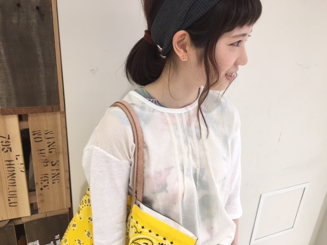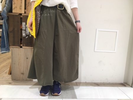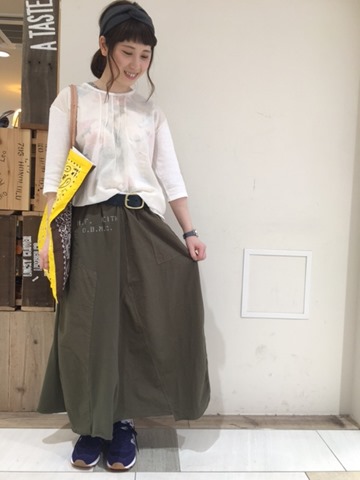 新作の切り替えスカート★ 鳥井さんが今日は新作のミリタリースカートと ハイビスカスタンクトップを透かせて☆お上品☆な スタイリングを着て下さっていましたー★ スカートはスウェット素材と綿生地の切り替えで とても合わせやすくなっています。 そして、キナリ系のかわいいTOPSも実は沢山あるんですよー! 要チェックしてみてくださいね♪