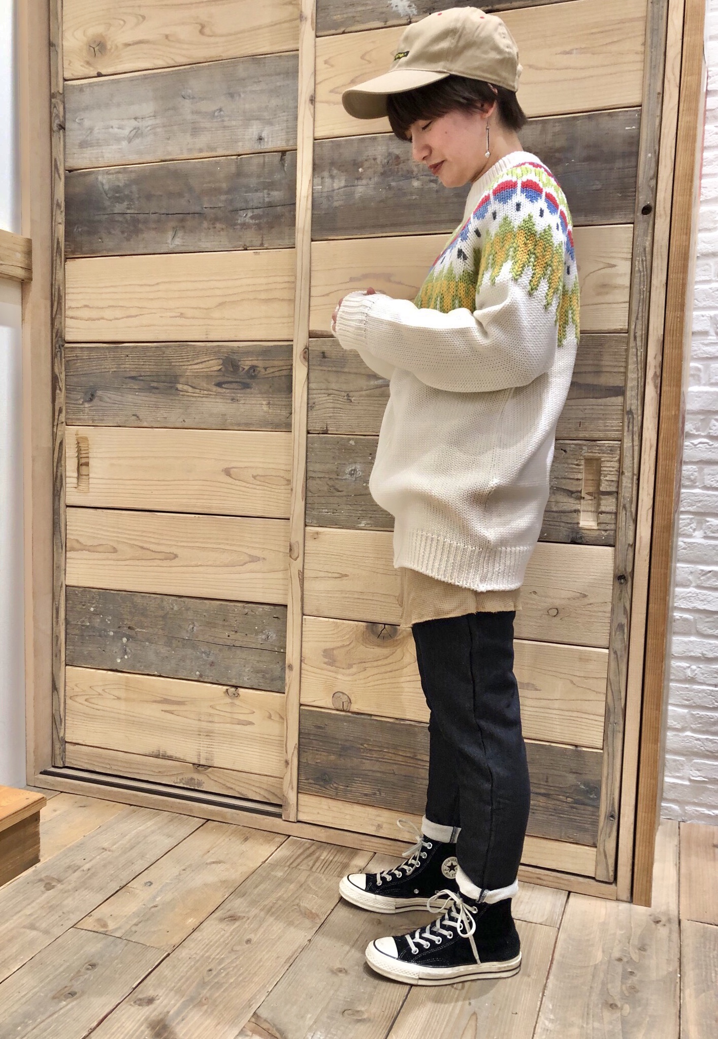 カウチンニットを使ったスタイリングのご紹介です*