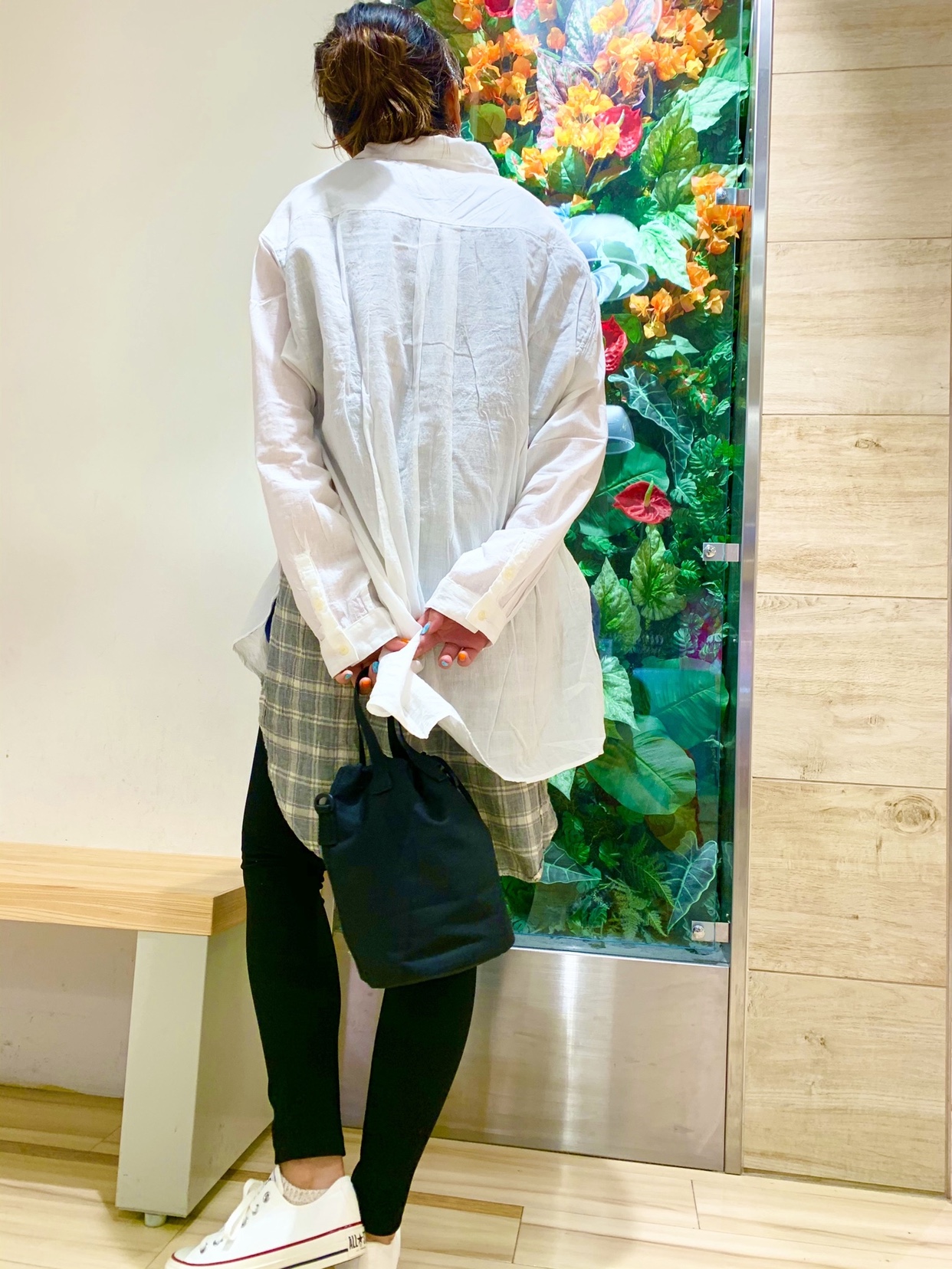 サンプルのかわいいチェックシャツをサロペットと着ました⭐️