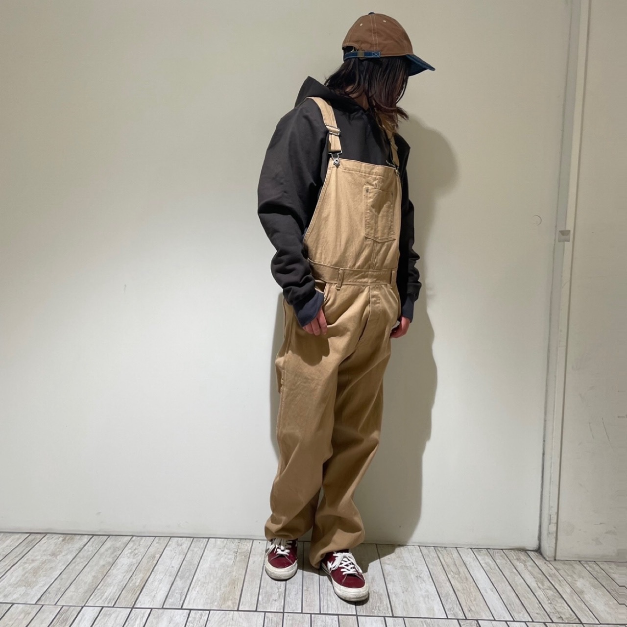 オーバーオールにLサイズのパーカー!!!オーバーオールがコンパクトなので、上からパーカーを着てもゴロゴロ窮屈な感じにならないです!!ご安心を(^0_0^)
