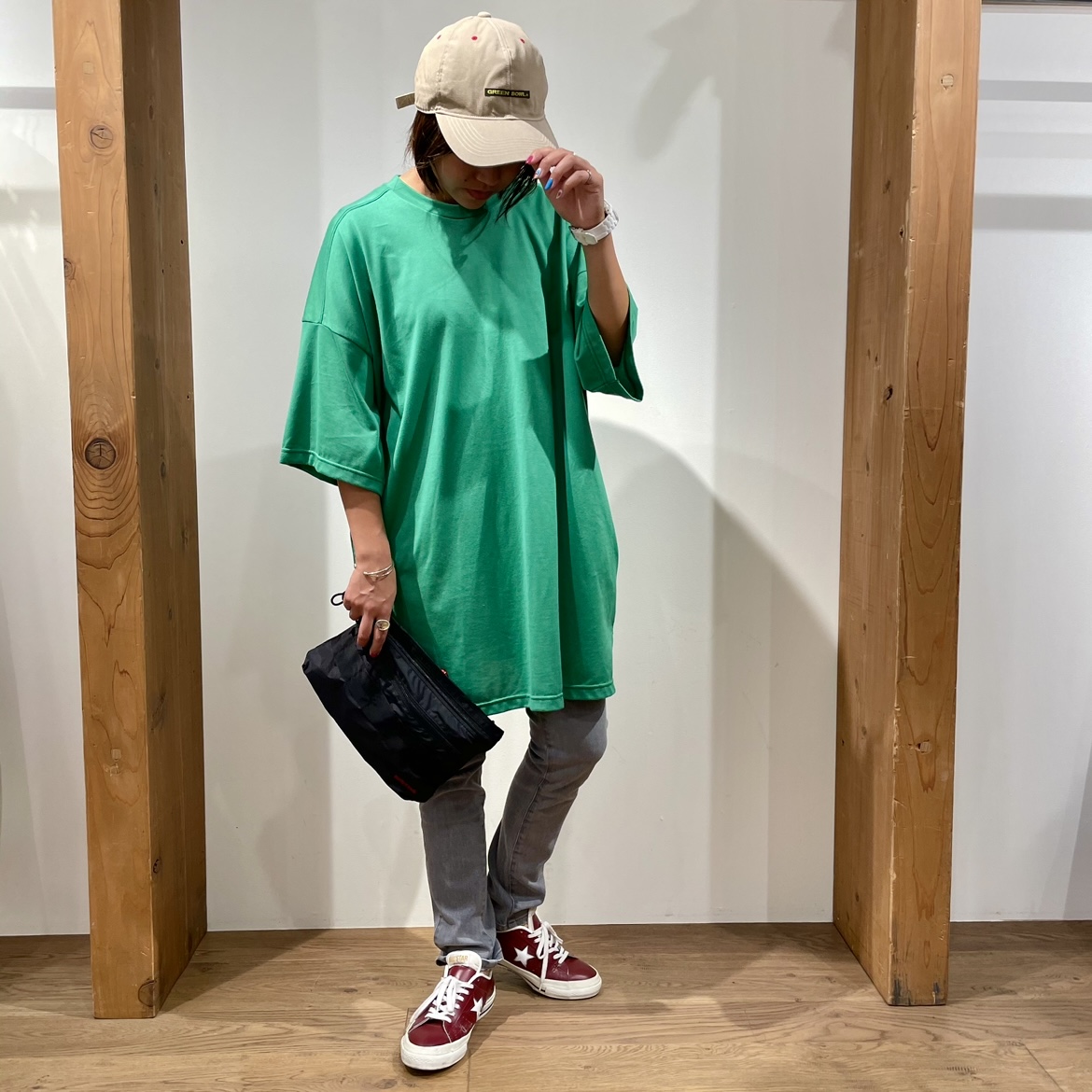 今回は、スキニーと合わせましたが、オーバーオールと合わせても、絶妙なバランスでGOOD(´∀`)b