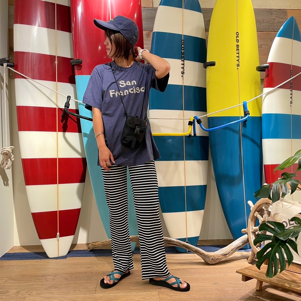 ボーダーパンツは、横に広がって見えますが!?ボーダーの巾が、細く!!ストレートなシルエットなので、足が長く見えます♪♪