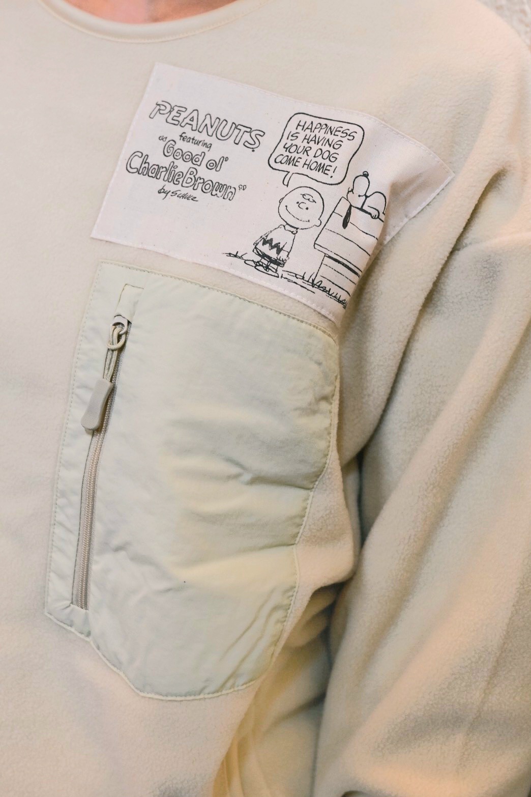トップスには肌触りの気持ちいいフリースクルーネックシャツで