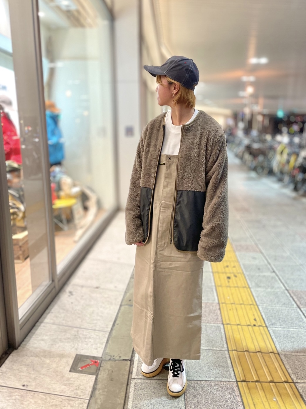 トップスは、普段より少し薄着にしました!!ボトムは、長方形シルエット代表のジャンパースカート!!