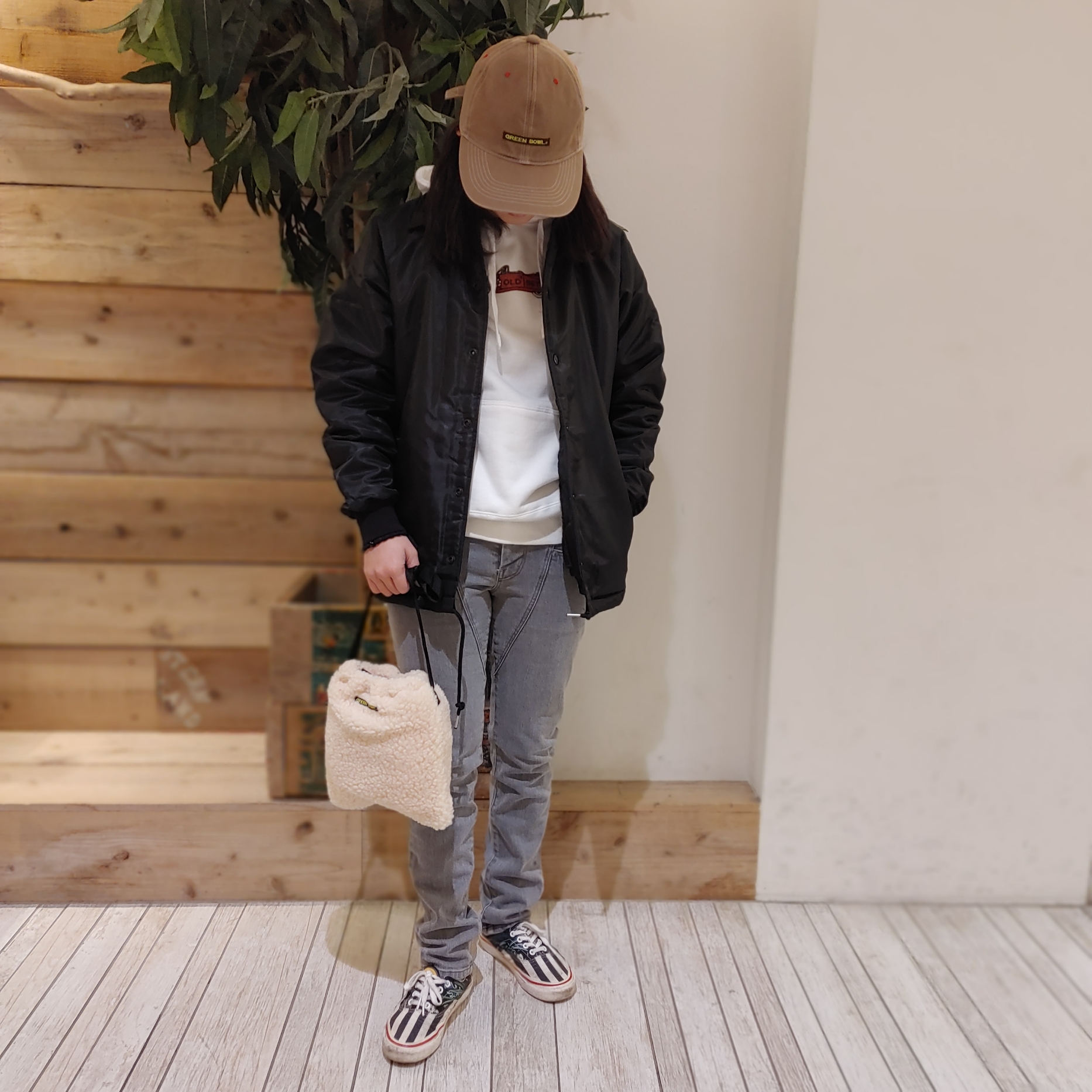 シルエットが、かわいいボアプルオーバーをメインに組み合わせました♪♪
