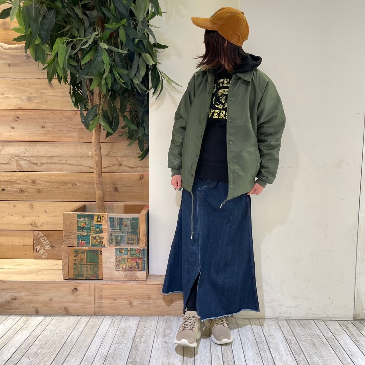 カーキのスカートをメインに組み合わせました( ´∀`)