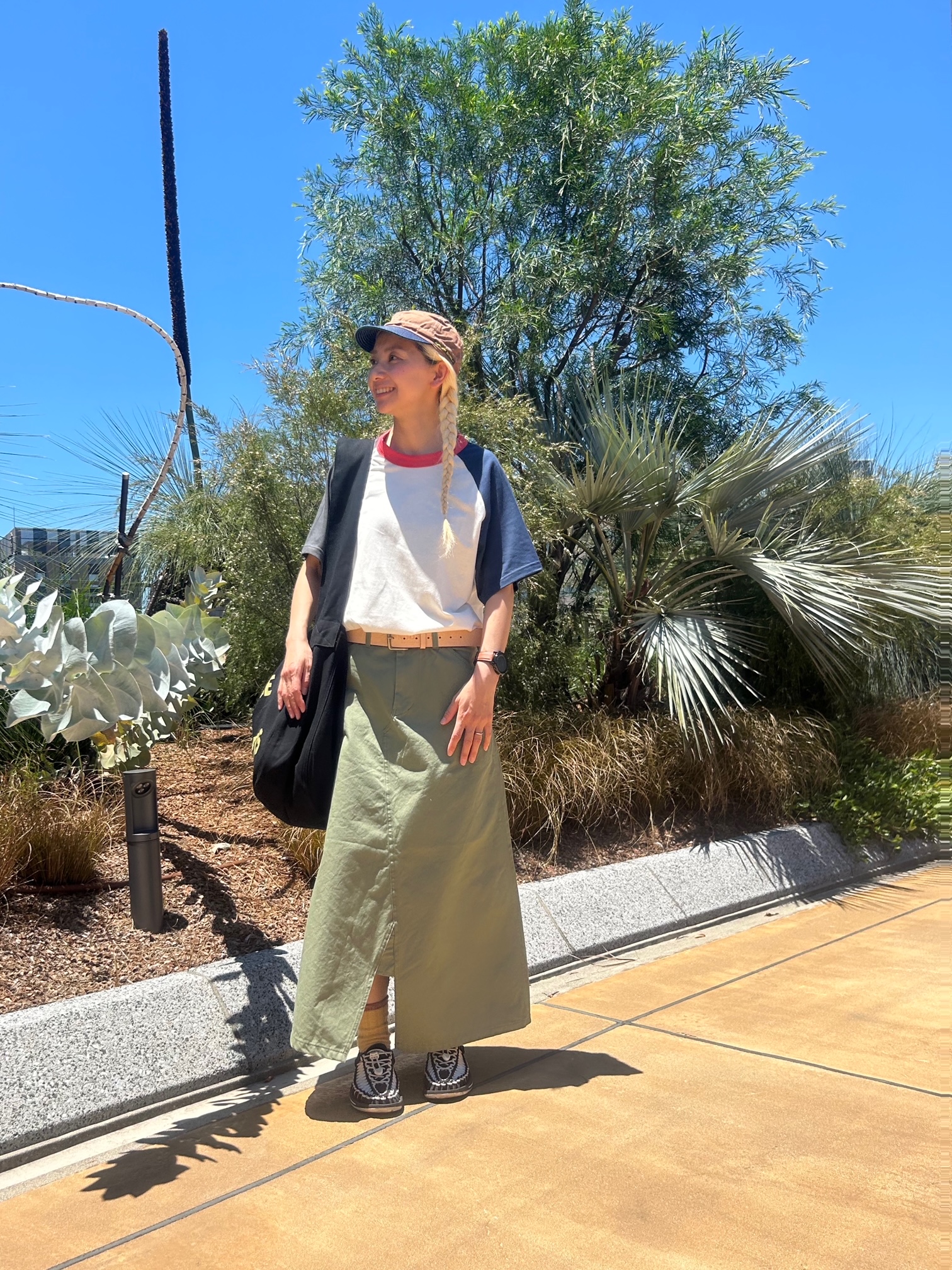 カーキのスカートをメインに組み合わせました( ´∀`)