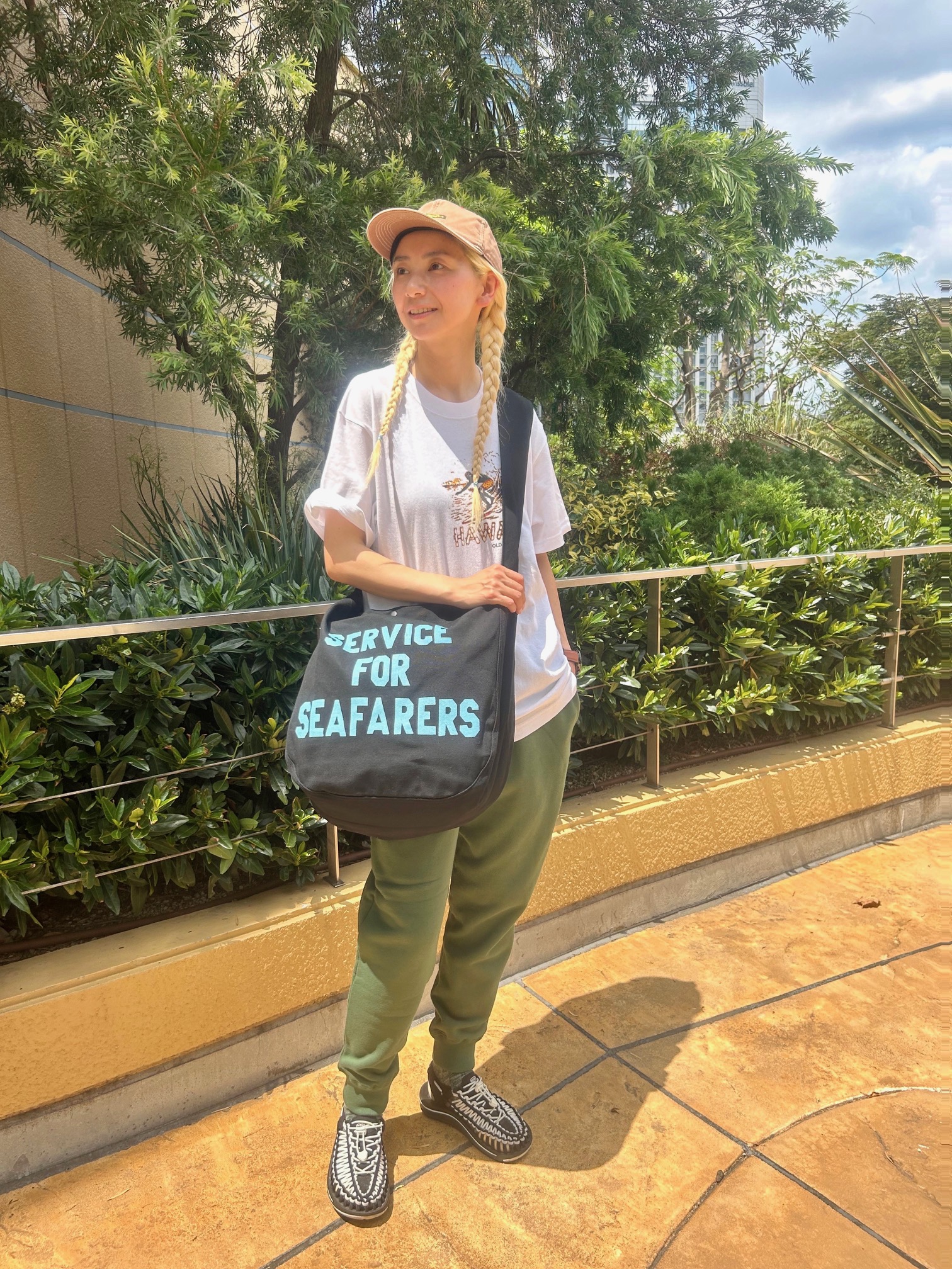 ロゴの色がピッタリなニュースペーパーバッグと合わせてみました!
