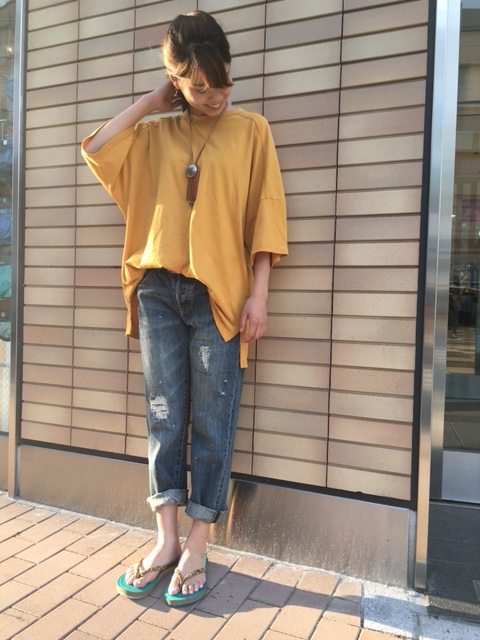 大人気*Wide T-shirts 可愛いWide T-shirtsが入荷しましたね! 色!サイズ!シルエット!三拍子ともに ドストライクのアイテムで見た瞬間ワクワクしてしまいました◡̈ 身長が小さめの小松さんはオーバーさが増しますが程よいサイズ感に☆ サイドにスリットが入っているのでイン してみても可愛く着ていただけいろいろ なスタイリングができそうです◎ 皆さんも是非要チェックです!!