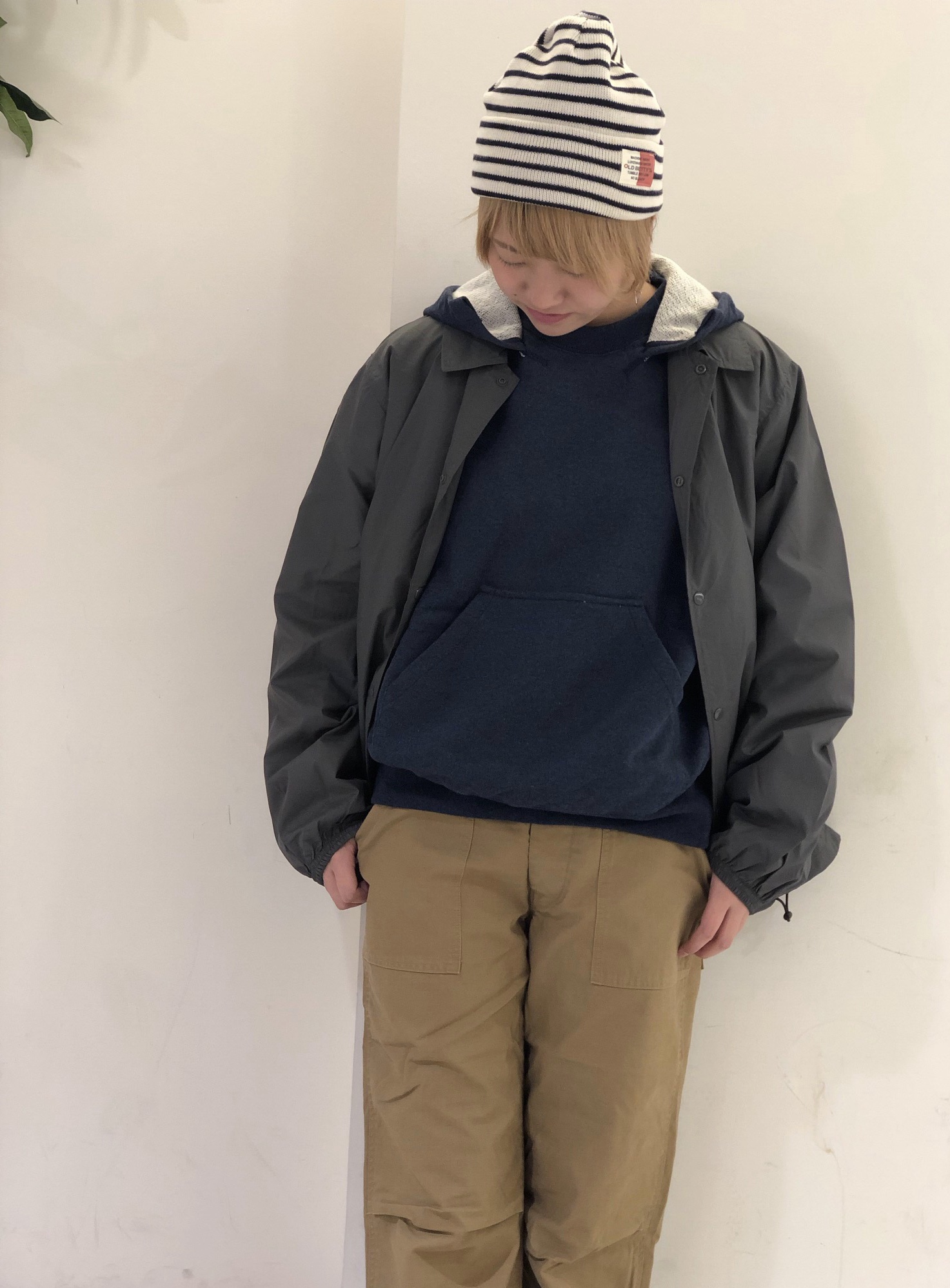 少しメンズライクで霞んだ色味のスタイリングがボーイッシュがお好きな方におすすめのスタイリングとなっております*