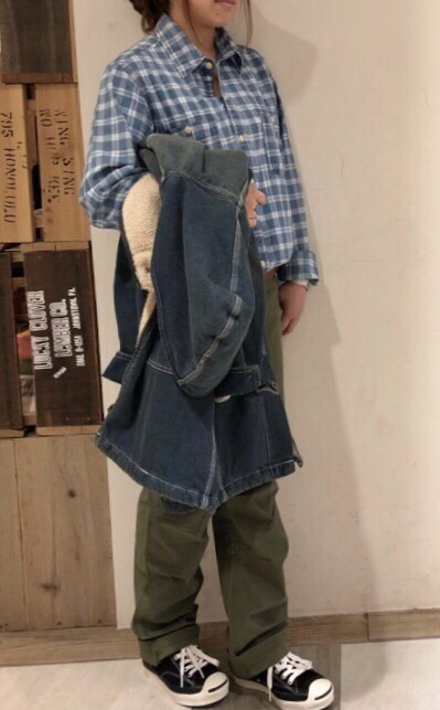 デニムオンデニムでデニムボアコートでインディゴスタイルにしてもおしゃれに着こなしていただけます◎