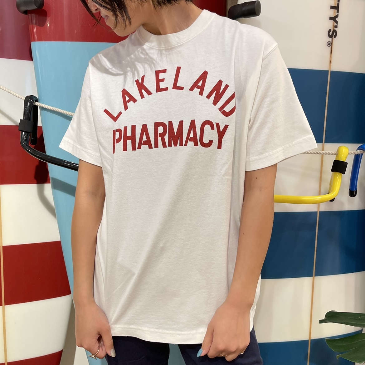 今回もスタッフお気に入りの新作Tシャツを使ってコーディネート(^^)