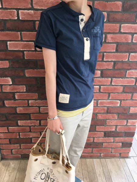新作のヘンリーネックTシャツを早速着てみました~~☆