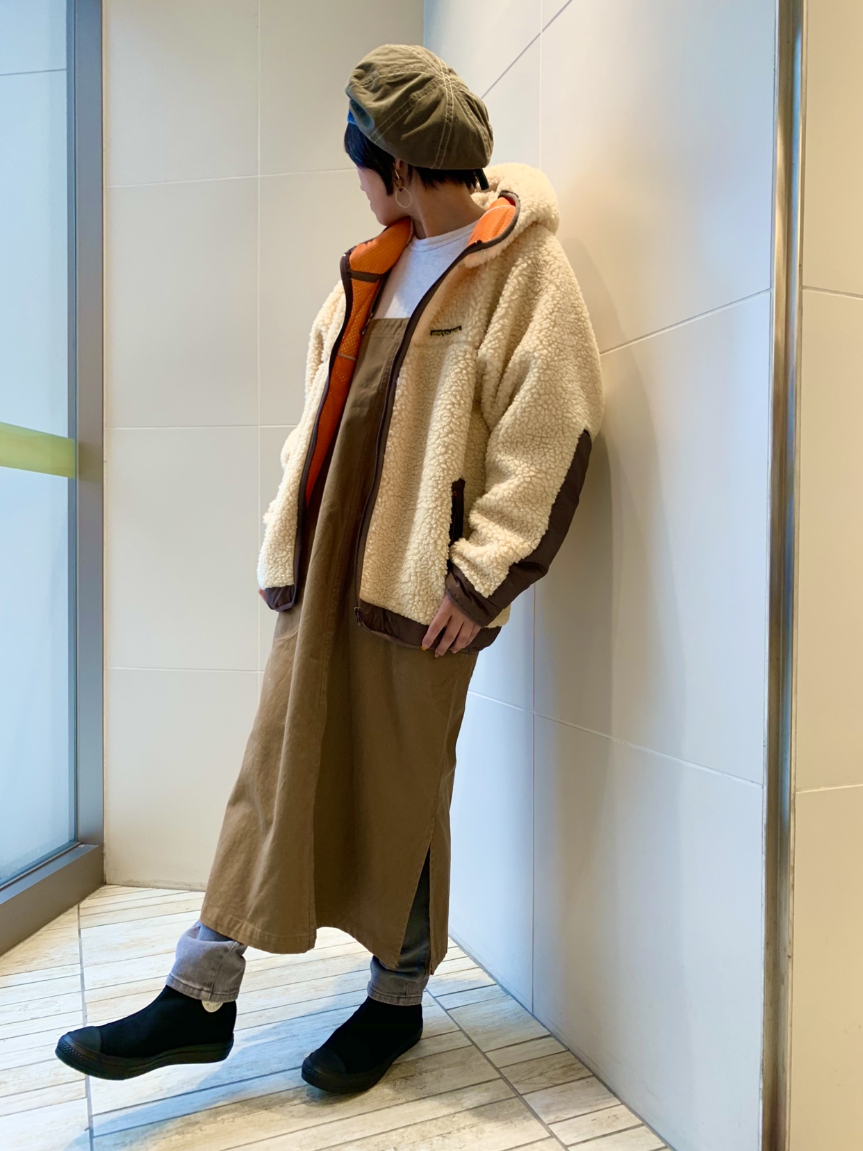 入荷して間もなく大人気のジャンパースカートをボアジャケットと合わせました。