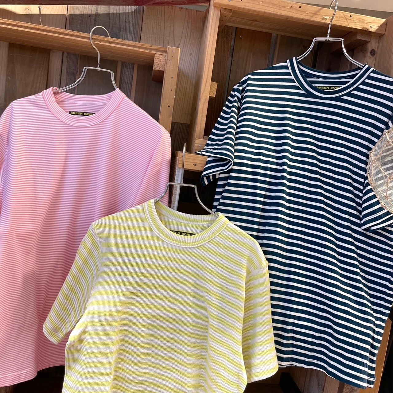 【GREEN BOWL】 Border Pattern Waffle T-shirts