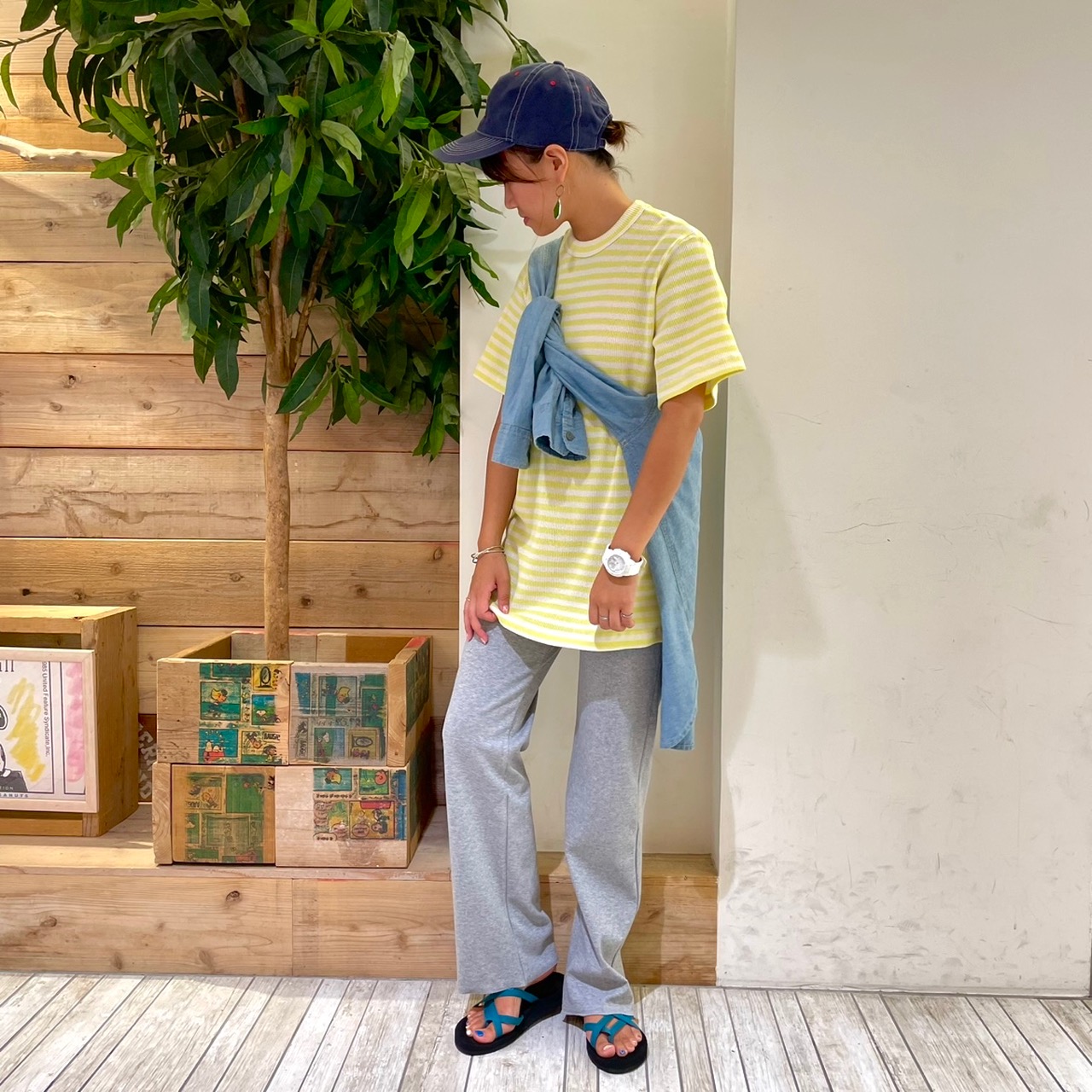 ちょっぴり薄めの黄色ボーダーは、ワッフルで汗の吸収がよく肌触りGOOD☆