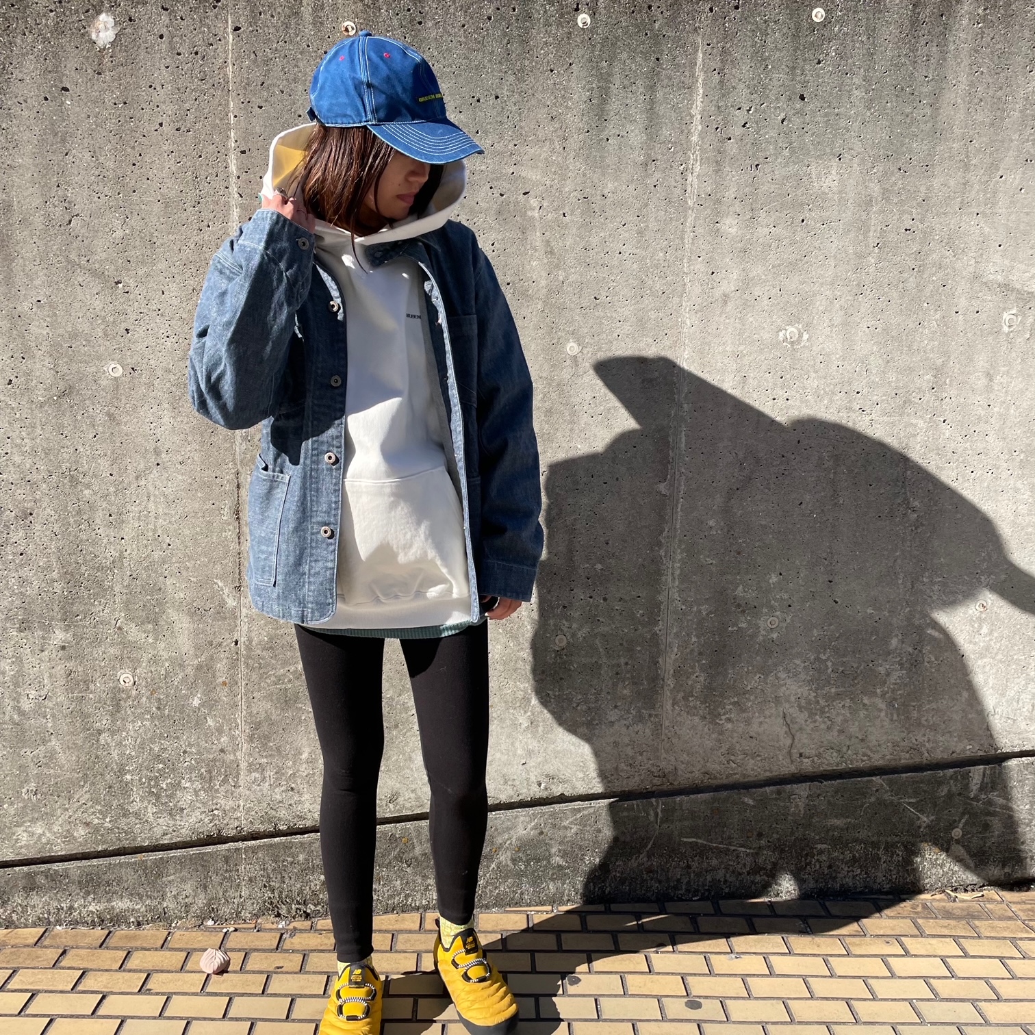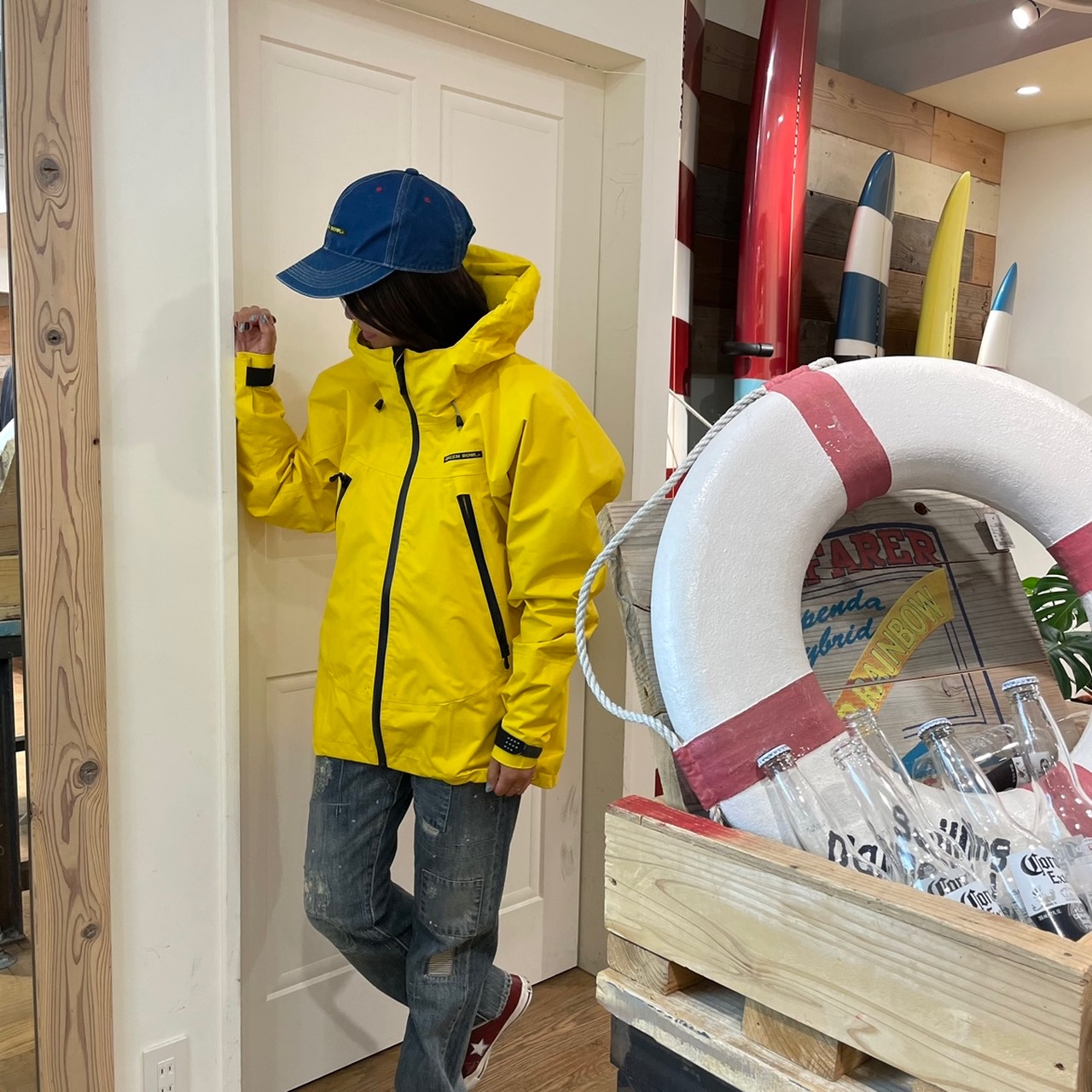 ナイロンパーカーは、鮮やかな黄色ですが意外に馴染みやすく、アクセントカラーで使えるので万能です(´∀`)b