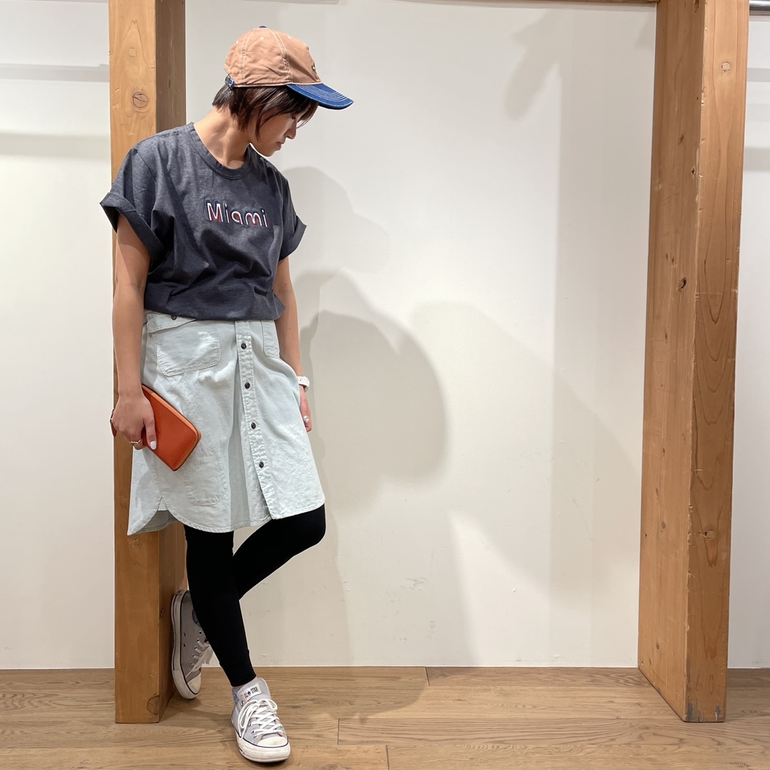 いつものシャツを今回は、スカートとしてコーディネートしました!!