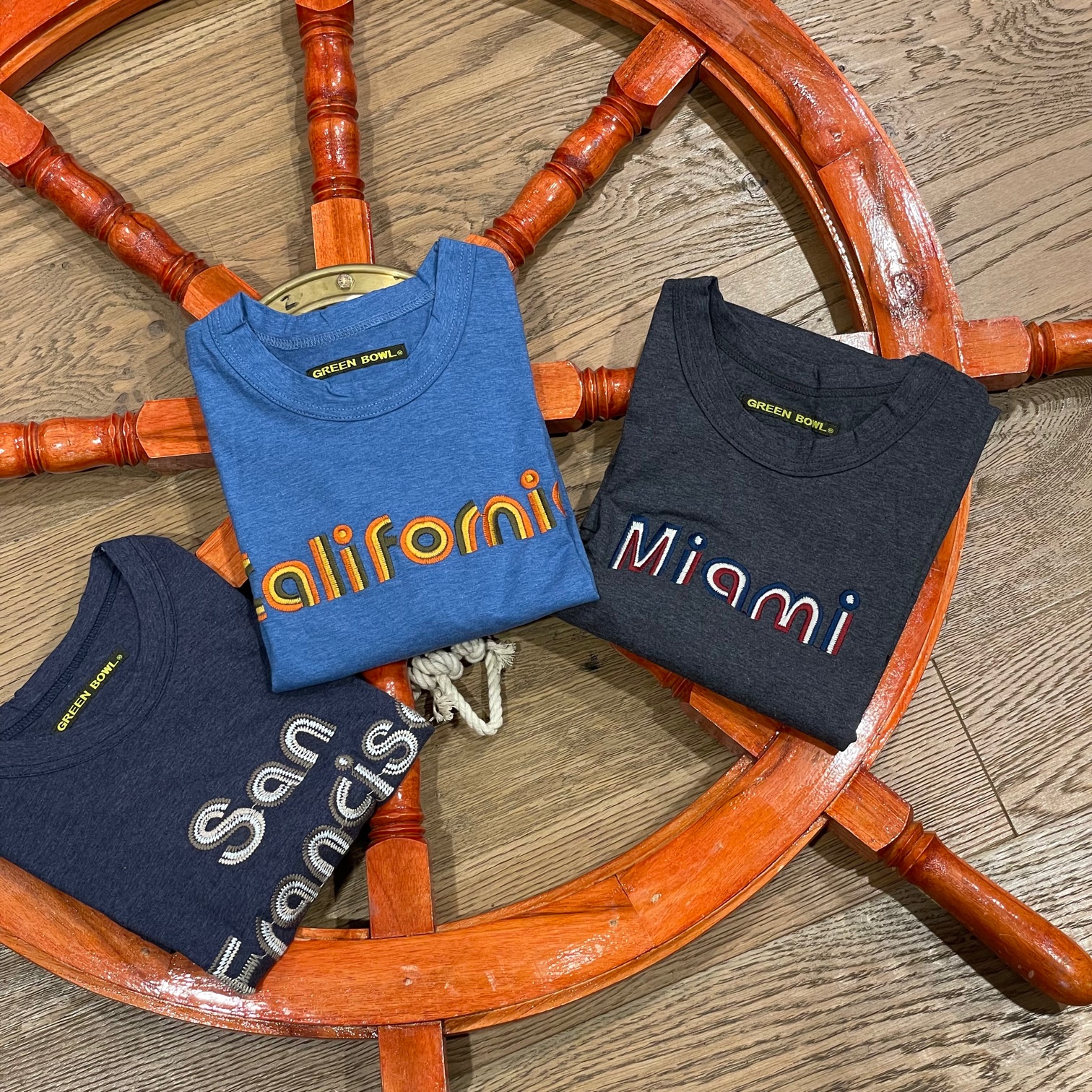アメリカの海岸の地名が、さりげなく入っています( ´ー`)刺繍の配色が、絶妙です☆