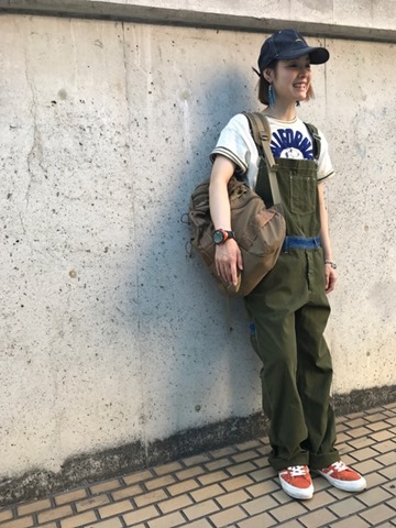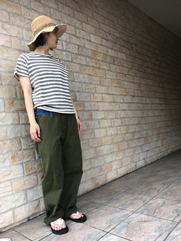 無地なのでスタッフは切替になっている可愛いパンツをアクセントにコーディネートを組んでいました☆