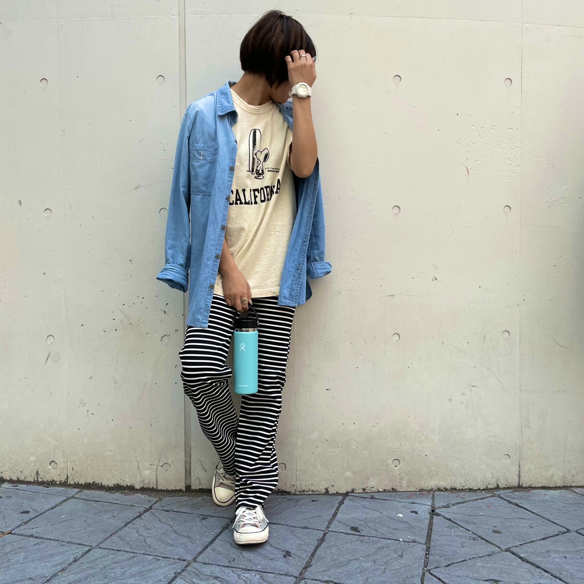 Tシャツはあえて大きめのサイズにすることで、おしりもすっぽり隠れるので◎