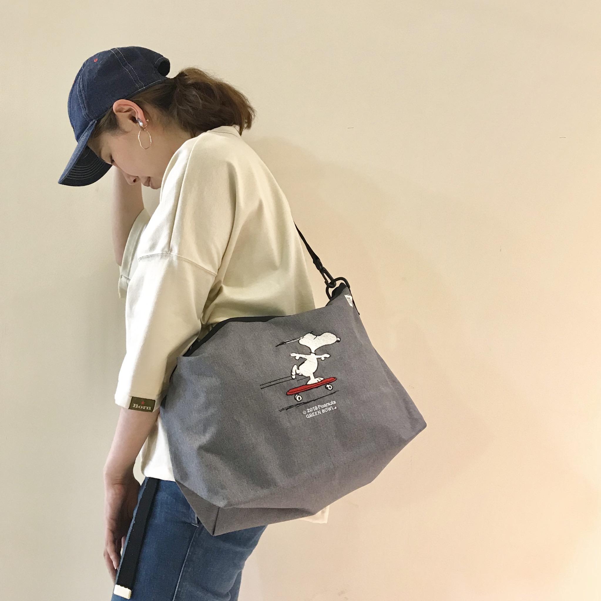 新作のSNOOPYのバッグはデニムで合わせやすくなっているので色んなスタイルに活躍する